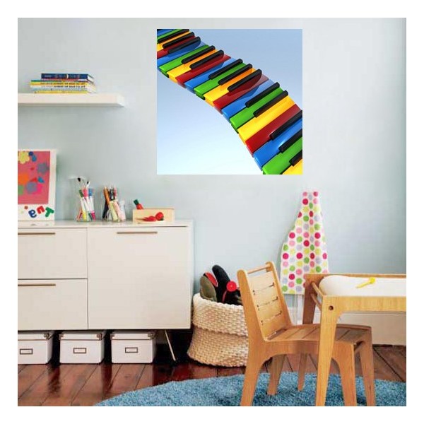 Vinilos decorativos de foto de piano con teclas de colores para decoración de interiores y paredes, recomendado para superficies lisas. Son muy sencillos de colocar, y la colocación es muy limpia y rápida.
