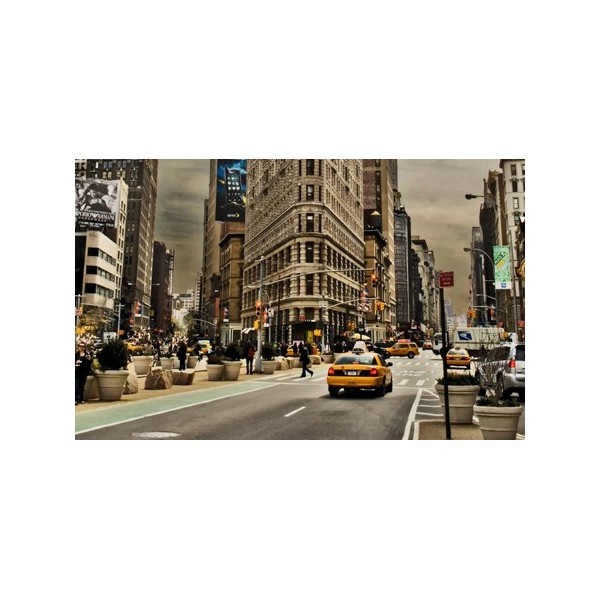 Los vinilos decorativos de foto de calle de Nueva York con taxi típico de la ciudad de los rascacielos en color, están fabricados mediante impresión digital sobre vinilo, con posterior laminado mate o brillo. El laminado protege la impresión y la hace más resistente y duradera y permite su fácil limpieza con un paño húmedo.