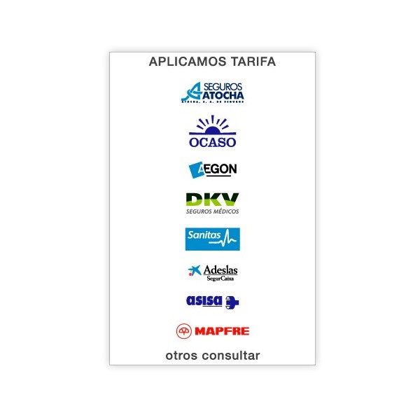 Una vez colocados, los vinilos decorativos con los logotipos de las compañías de seguros Atocha, Adeslas, DKV, Mapfre, etc, quedan con la imagen impresa sobre fondo blanco y posterior laminado para su protección.