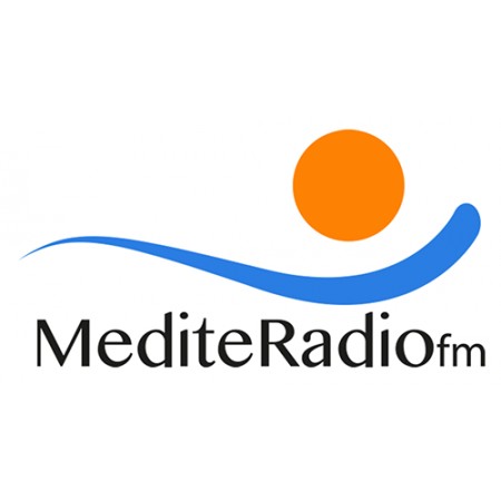 Vinilo de la empresa MediteRadio FM, fabricado en impresión digital sobre vinilo blanco, con laminado posterior para proteger la impresión.