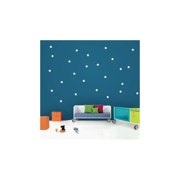 Vinilos decorativos infantiles de estrellitas para decoración de interiores y paredes, recomendado para superficies lisas. Son muy sencillos de colocar, y la colocación es muy limpia y rápida.