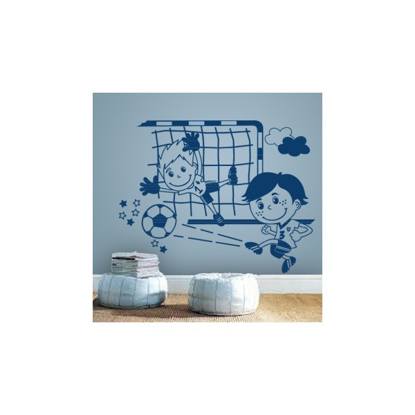 Vinilos decorativos infantiles de los niños jugando al fútbol para decoración de interiores y paredes, recomendado para superficies lisas. Son muy sencillos de colocar, y la colocación es muy limpia y rápida.