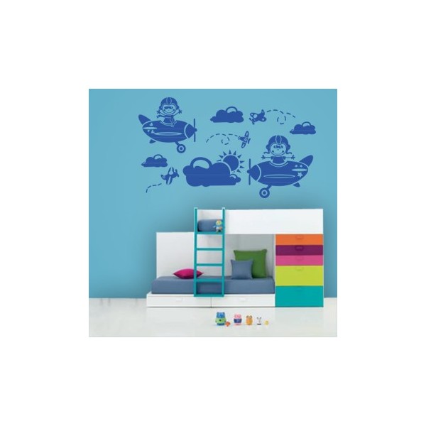 Vinilos decorativos infantiles de los niños aviadores para decoración de interiores y paredes, recomendado para superficies lisas. Son muy sencillos de colocar, y la colocación es muy limpia y rápida.