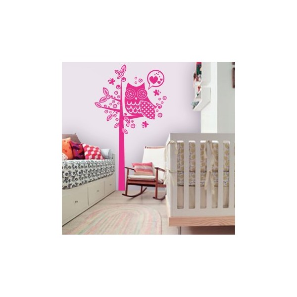 Vinilos decorativos infantiles de búho en un árbol para decoración de interiores y paredes infantiles, recomendado para superficies lisas. Son muy sencillos de colocar, y la colocación es muy limpia y rápida.