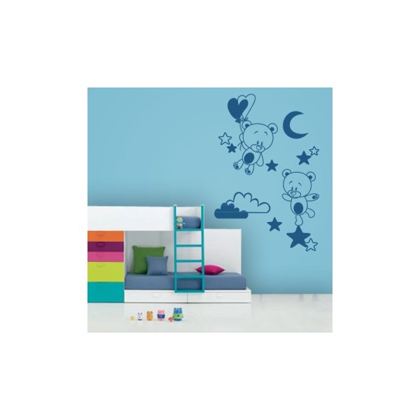 Vinilos decorativos infantiles de ositos con nubes, estrellas y la luna para decoración de interiores y paredes infantiles, recomendado para superficies lisas. Son muy sencillos de colocar, y la colocación es muy limpia y rápida.