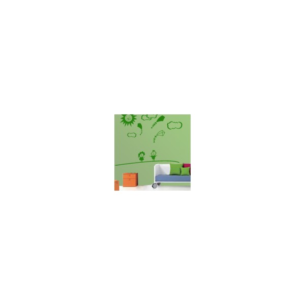 Una vez colocados, los vinilos de niños con cometas quedan sin fondo y sólo queda el diseño de los niños jugando, el sol, etc, sobre la pared.