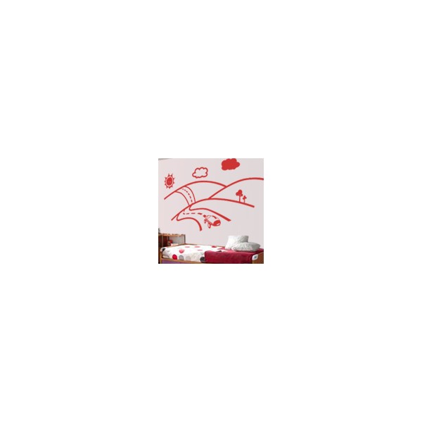 Vinilos decorativos de coche infantil en una carretera que cruza las montañas, sencillo de colocar sobre paredes y superficies lisas y crear un entorno infantil.