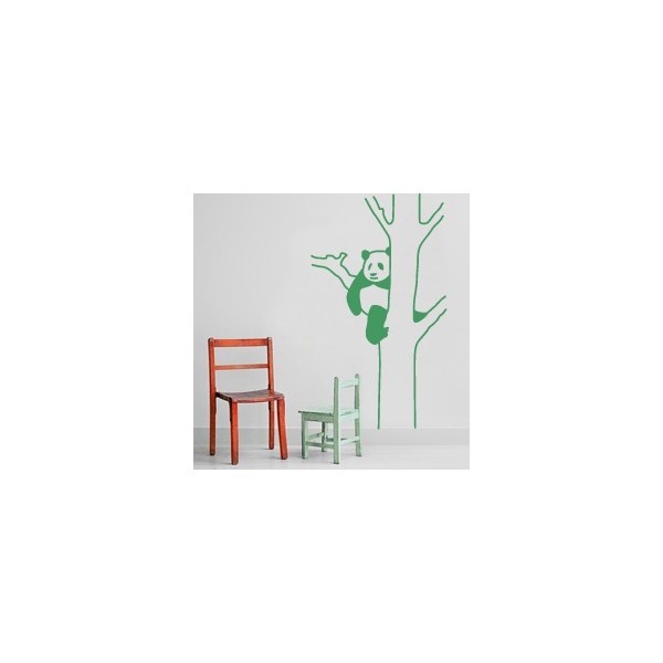 Vinilos decorativos infantiles de oso panda en un árbol para decoracion de interiores y paredes, recomendado para superficies lisas. Son muy sencillos de colocar, y la colocación es muy limpia y rápida.