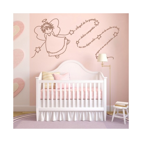 Vinilos decorativos infantiles de ángel de la guarda con texto para decoracion de interiores y paredes, recomendado para superficies lisas. Son muy sencillos de colocar, y la colocación es muy limpia y rápida.
