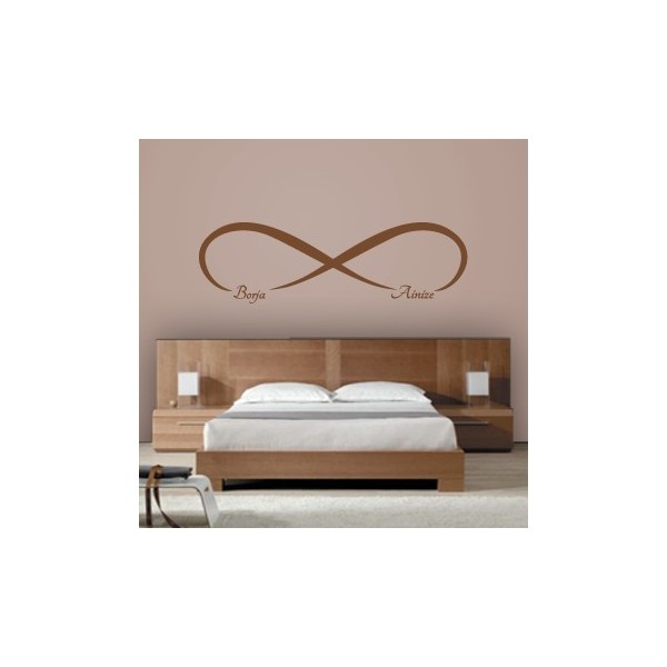 Vinilos decorativos de amor con el símbolo de infinito y dos nombres para decoración de interiores y paredes, recomendado para superficies lisas. Son muy sencillos de colocar, y la colocación es muy limpia y rápida.