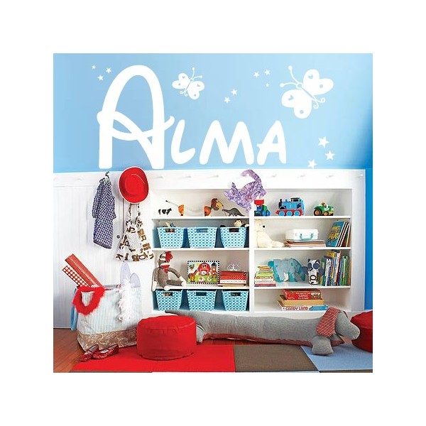 Los colores de los vinilos decorativos infantiles con nombre Alma que aparecen en está simulación son una aproximación a su color real, varían en función de la calibración de su monitor.