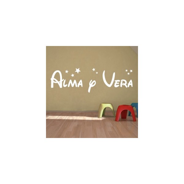 Vinilos decorativos con nombres Alma y Vera con estrellitas para decoracion de interiores, recomendado para superficies lisas. Son muy sencillos de colocar, y la colocación es muy limpia y rápida.
