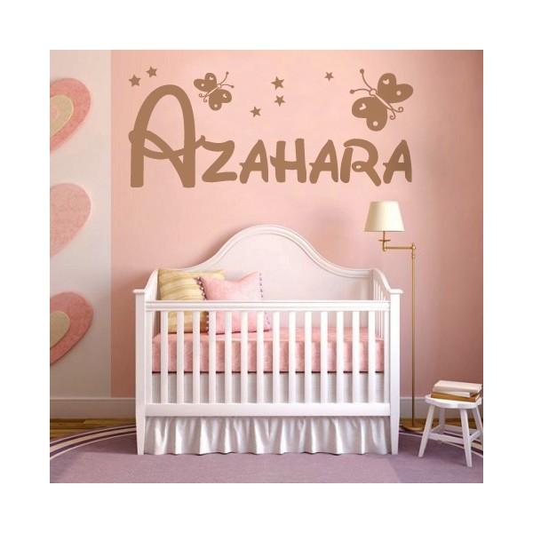 Pegatinas de paredes con nombre Azahara y con estrellas y mariposas para decoración de paredes, recomendado para superficies lisas. Son muy sencillos de colocar, y la colocación es muy limpia y rápida.