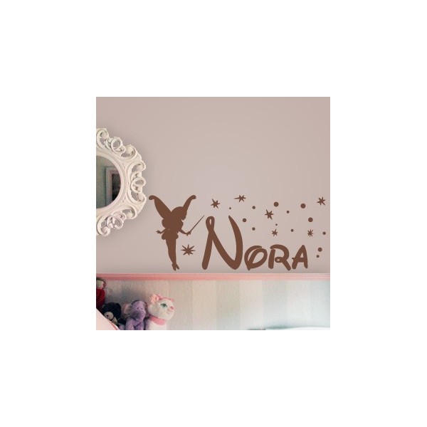 Los colores de los vinilos decorativos infantiles con nombre Nora y un hada y estrellitas que aparecen en está simulación son una aproximación a su color real, varían en función de la calibración de su monitor.