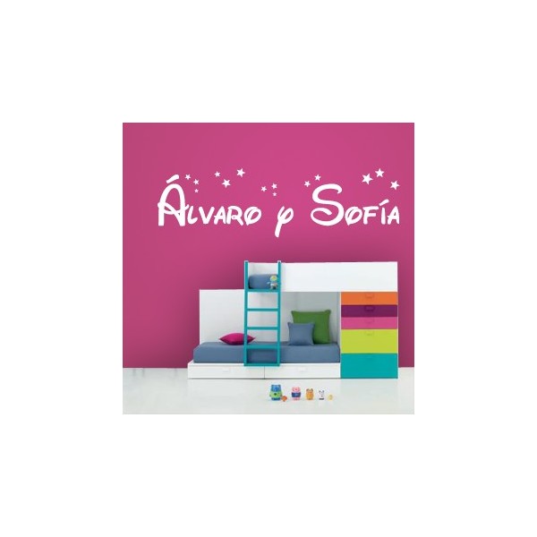 Vinilos decorativos con nombres, con los nombres Álvaro y Sofía con estrellas para decoracion de interiores recomendado para superficies lisas. Son muy sencillos de colocar, y la colocación es muy limpia y rápida.