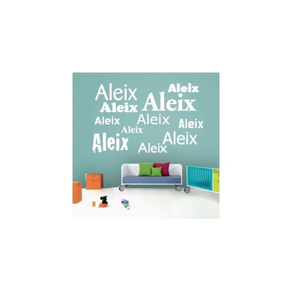 Vinilos decorativos con nombre Aleix en diferentes tamaños y tipos de letra para decoración de paredes, recomendado para superficies lisas. Son muy sencillos de colocar, y la colocación es muy limpia y rápida.
