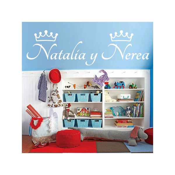 Vinilos decorativos con nombres Natalia y Nerea con coronas de princesas para decoración de paredes, recomendado para superficies lisas. Son muy sencillos de colocar, y la colocación es muy limpia y rápida.