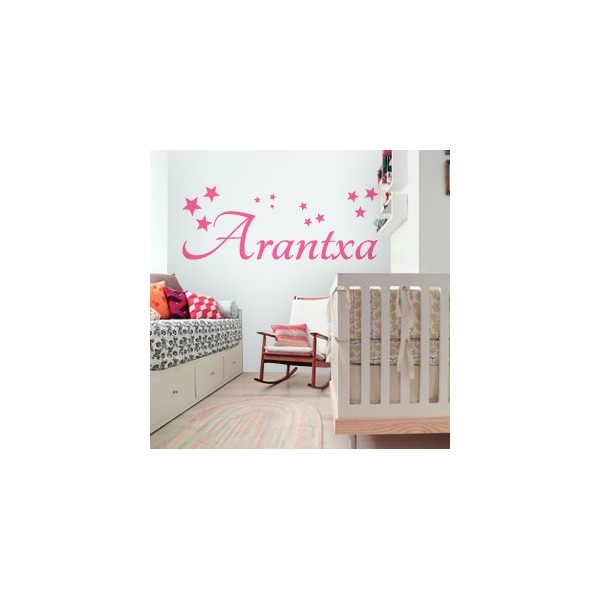 Vinilos decorativos con el nombre Arantxa con estrellitas para decoración de paredes de forma original, recomendado para superficies lisas. Son muy sencillos de colocar, y la colocación es muy limpia y rápida.