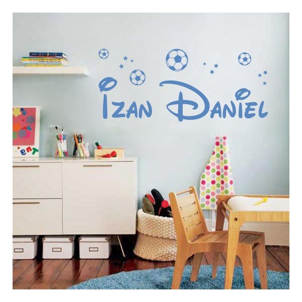 Los pegatinas o stickers decorativos para paredes infantiles con nombre Izan Daniel y estrellitas y balones de fútbol son perfectos para decorar espacios con el nombre Izan Daniel. Nos permiten personalizar la decoración y crear ambientes relacionados con el mundo de imaginación y fantasía de los niños.
