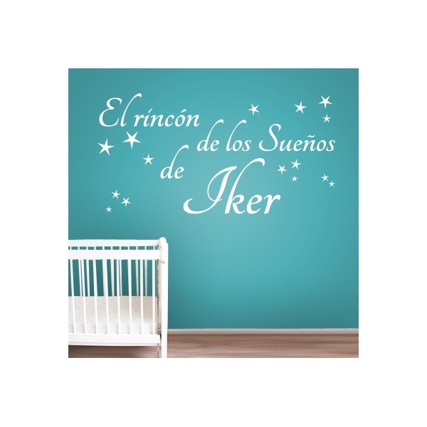 Con estos vinilos decorativos con la frase "El Rincón de los Sueños de Iker" con estrellas y mariposas puedes decorar con un toque especial tus paredes y darles un estilo único y personal.