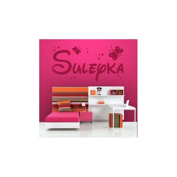 Los pegatinas para paredes infantiles con nombre Suleyka y estrellitas y mariposas son perfectos para decorar espacios con el nombre Suleyka. Nos permiten personalizar la decoración y crear ambientes relacionados con el mundo de imaginación y fantasía de los niños.