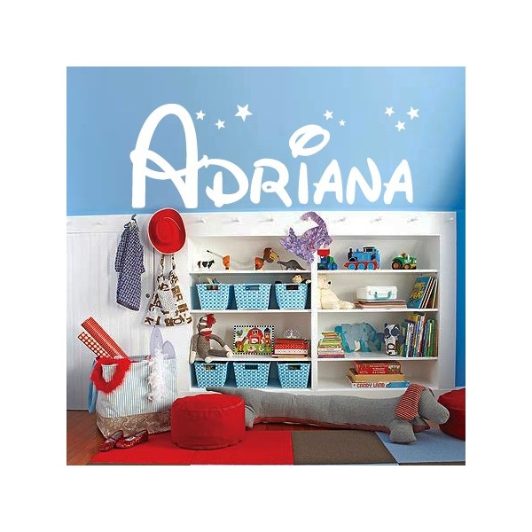 Vinilos decorativos infantiles con nombre Adriana en tipografía Walt Disney para decoracion de interiores y paredes, recomendado para superficies lisas. Son muy sencillos de colocar, y la colocación es muy limpia y rápida.