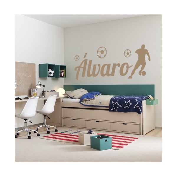 Los pegatinas o stickers decorativos para paredes infantiles con nombre Álvaro, la silueta de un futbolista y balones de fútbol son perfectos para decorar espacios con el nombre Rubén. Nos permiten personalizar la decoración y crear ambientes relacionados con el mundo de imaginación y fantasía de los niños.