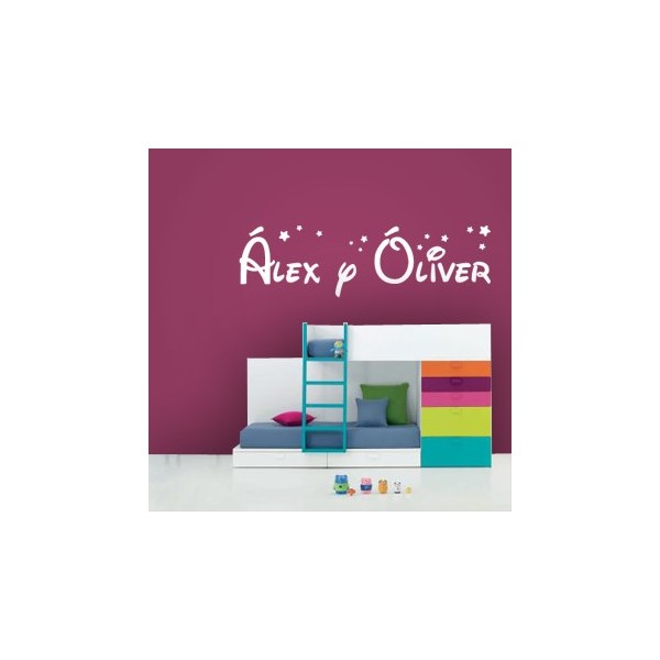 Vinilos decorativos con nombres Álex y Óliver para decoración de paredes, recomendado para superficies lisas. Son muy sencillos de colocar, y la colocación es muy limpia y rápida.