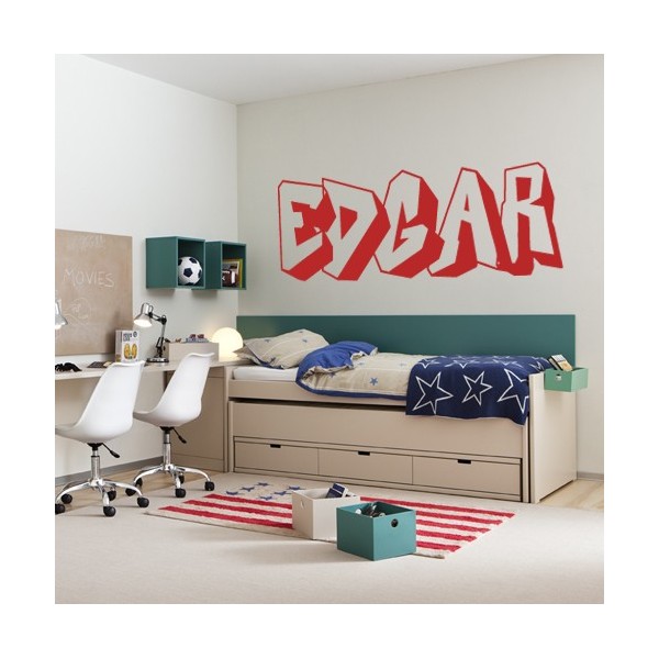 Vinilos decorativos infantiles con nombre Edgar en tipografía de estilo graffitti para decoracion de interiores y paredes, recomendado para superficies lisas. Son muy sencillos de colocar, y la colocación es muy limpia y rápida.