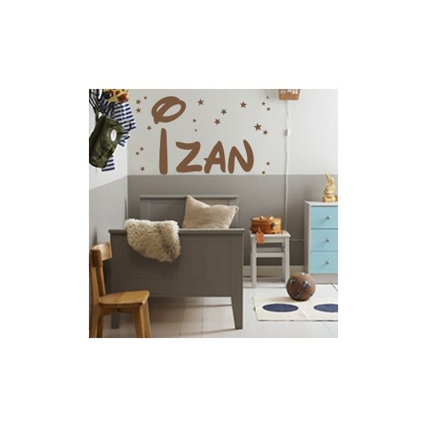 Vinilos decorativos infantiles con nombre Izan y estrellitas para decoración de interiores y paredes, recomendado para superficies lisas. Son muy sencillos de colocar, y la colocación es muy limpia y rápida.