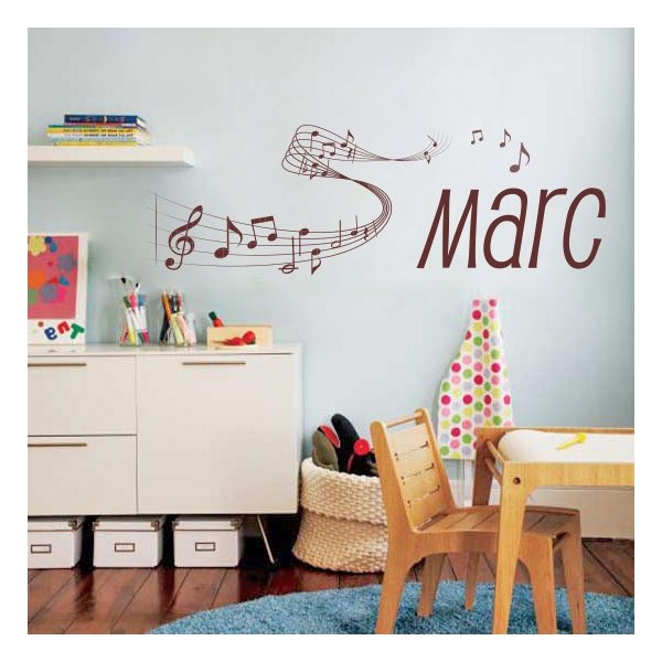 Vinilos decorativos infantiles musicales con el nombre Marc y un pentagrama con las notas musicales para decoracion de paredes de forma original, recomendado para superficies lisas. Son muy sencillos de colocar, y la colocación es muy limpia y rápida.