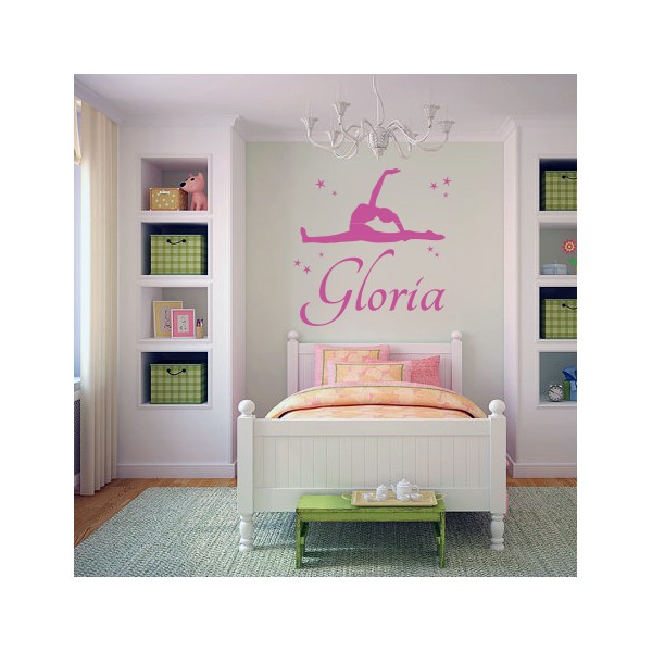 Pegatinas para paredes infantiles con nombre Gloria con diseño de gimnasia rítmica con estrellas, para decoración de interiores y paredes, recomendado para superficies lisas. Son muy sencillos de colocar, y la colocación es muy limpia y rápida.