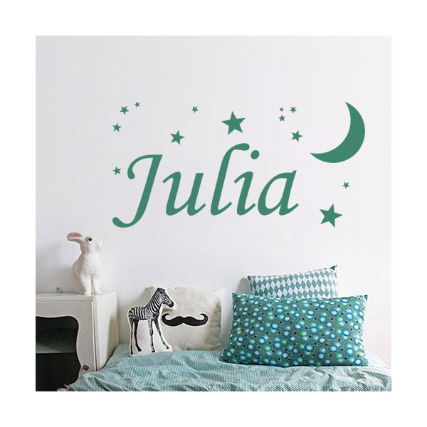 Vinilos para paredes infantiles con nombre Julia con estrellas y luna, para decoración de interiores y paredes, recomendado para superficies lisas. Son muy sencillos de colocar, y la colocación es muy limpia y rápida.