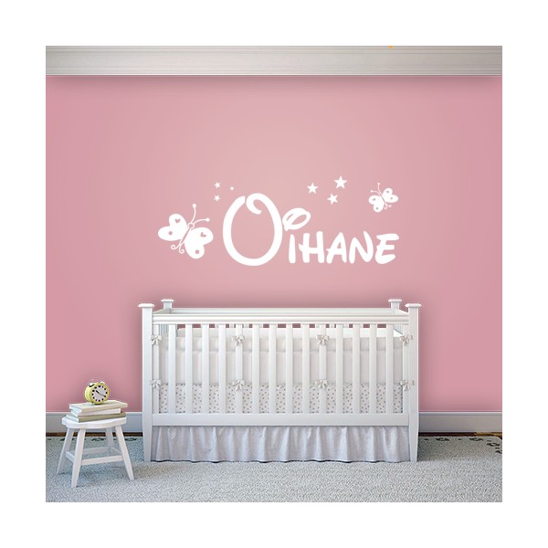 Pegatinas para paredes infantiles con nombre Oihane con tipo de letra Disney, estrellitas y mariposas, para decoración de interiores y paredes, recomendado para superficies lisas. Son muy sencillos de colocar, y la colocación es muy limpia y rápida.