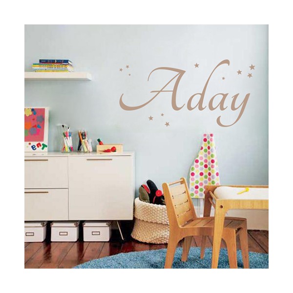 Los colores de los vinilos decorativos infantiles con nombre Aday con estrellas que aparecen en está simulación son una aproximación a su color real, varían en función de la calibración de su monitor.