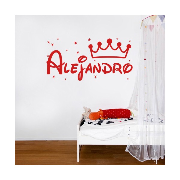 Vinilo con nombre Alejandro con una corona y con estrellitas para paredes, para decoración infantil. Vinilo decorativo o sticker adhesivo con nombre Alejandro con una corona y estrellas para decoración de pared.