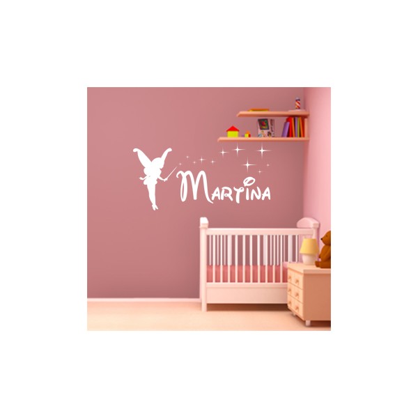 Vinilos decorativos infantiles con el nombre Martina con un hada y estrellitas, para decoración de interiores y paredes, recomendado para superficies lisas. Son muy sencillos de colocar, y la colocación es muy limpia y rápida.
