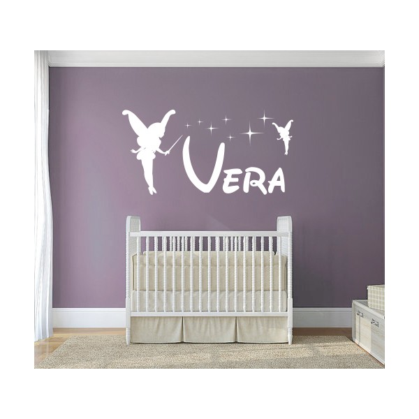 Vinilos decorativos con nombre Vera y con hadas y estrellas para decoración de paredes de forma original, recomendado para superficies lisas. Son muy sencillos de colocar, y la colocación es muy limpia y rápida.