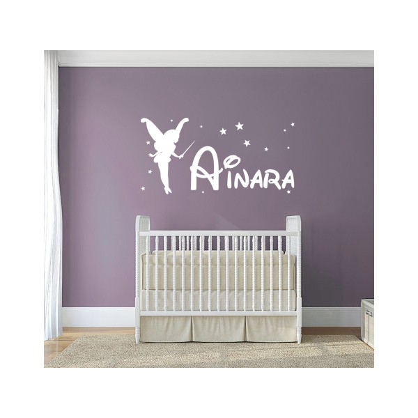 Los colores de los vinilos decorativos con hada y estrellas y el nombre Ainara que aparecen en está simulación son una aproximación a su color real y pueden variar en función de la calibración de su monitor.