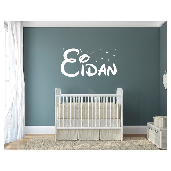 Vinilos decorativos con el nombre Eidan estilo Disney con estrellitas para decoración de paredes de forma original, recomendado para superficies lisas. Son muy sencillos de colocar, y la colocación es muy limpia y rápida.
