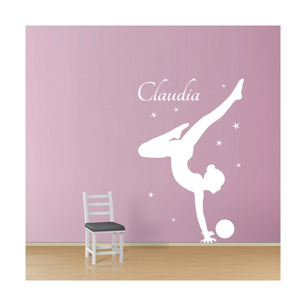 Vinilos decorativos de deportista de gimnasia rítmica con el nombre Claudia para decoracion de interiores y paredes, recomendado para superficies lisas. Son muy sencillos de colocar, y la colocación es muy limpia y rápida.