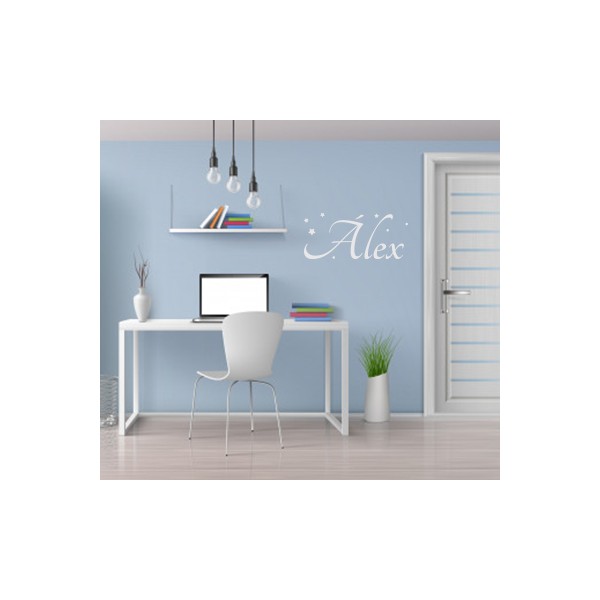 Vinilos decorativos infantiles con el nombre Álex, con estrellitas, para decoración de interiores y paredes, recomendado para superficies lisas. Son muy sencillos de colocar, y la colocación es muy limpia y rápida.
