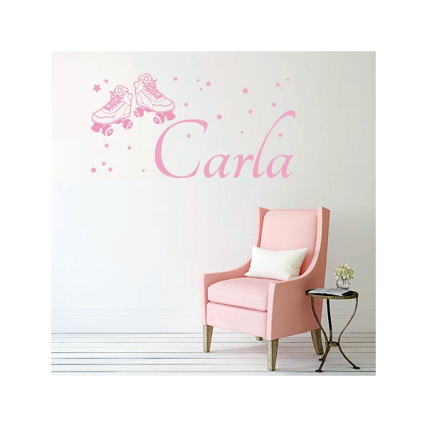 Vinilos decorativos con el nombre Carla, unos patines y con estrellitas para decoracion de paredes de forma original, recomendado para superficies lisas. Son muy sencillos de colocar, y la colocación es muy limpia y rápida.