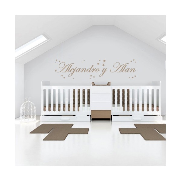 Vinilos decorativos con nombres Alejandro y Alan y estrellitas para decoracion de interiores recomendado para superficies lisas. Son muy sencillos de colocar, y la colocación es muy limpia y rápida.