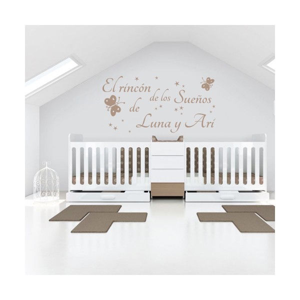 Los vinilos decorativos infantiles con nombres Luna y Ari, con mariposas y estrellitas son perfectos para decorar espacios con los nombres Luna y Ari. Nos permiten personalizar la decoración y crear ambientes relacionados con el mundo de imaginación y fantasía de los niños y jóvenes.