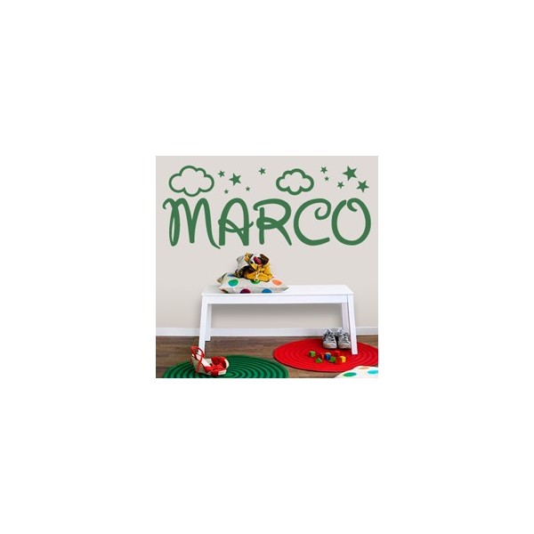 Vinilos decorativos infantiles con nombres Marco para decoracion de interiores y paredes, recomendado para superficies lisas. Son muy sencillos de colocar, y la colocación es muy limpia y rápida.