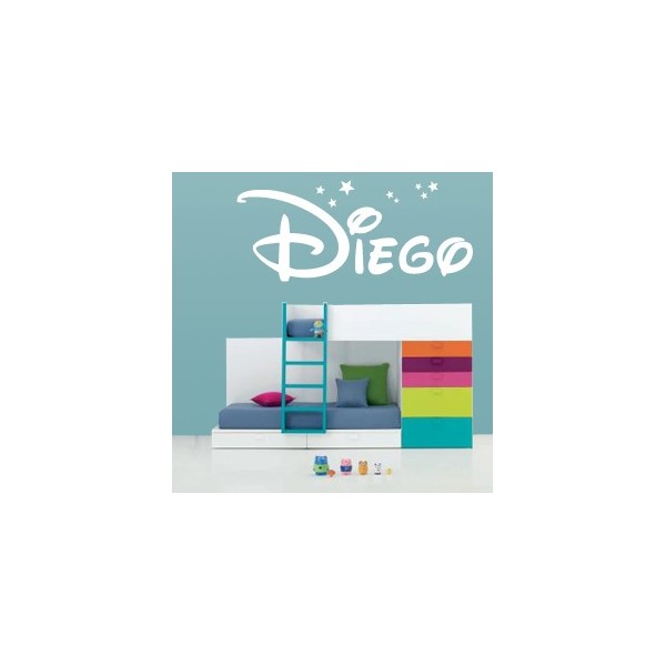 Vinilos decorativos para decoracion de interiores con el nombre diego, recomendado para superficies lisas. Son muy sencillos de colocar, y la colocación es muy limpia y rápida.