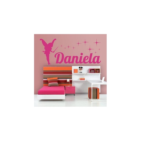 Los colores de los vinilos decorativos infantiles de hada con nombre Daniela que aparecen en está simulación son una aproximación a su color real, varían en función de la calibración de su monitor.