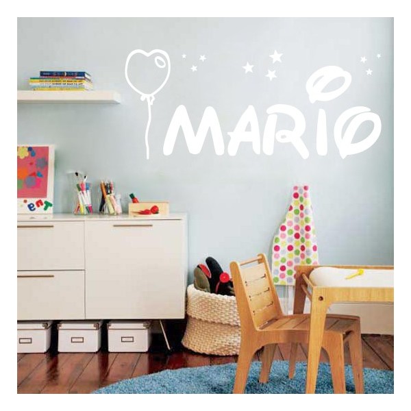 Vinilos infantiles de nombres con el nombre Mario con globo y mariposas para decoracion de interiores recomendado para superficies lisas. Son muy sencillos de colocar, y la colocación es muy limpia y rápida.