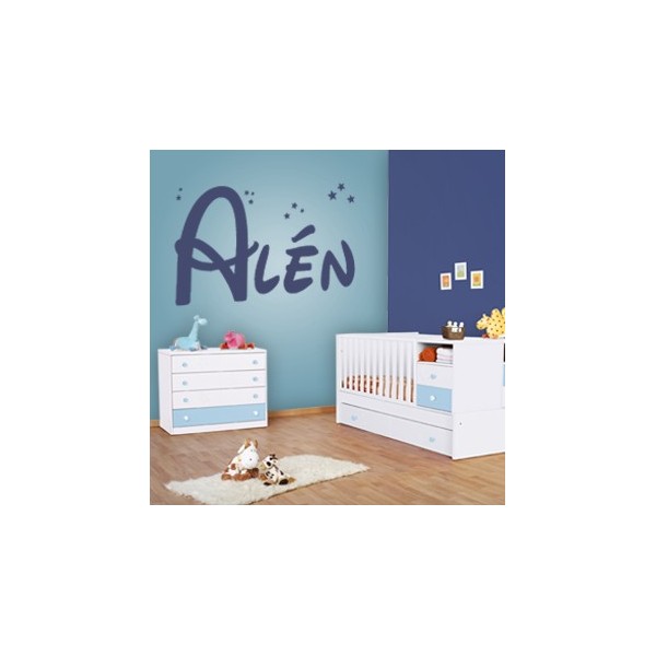 Vinilos decorativos con nombre Alen y estrellitas para decoracion de interiores, recomendado para superficies lisas. Son muy sencillos de colocar, y la colocación es muy limpia y rápida.